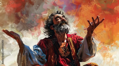 Fototapeta premium Engaging storyteller enchants with dynamic gestures.