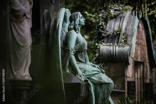 © bilderstoeckchen, Fototapeta premium Engel, Grabmal auf einem Grab auf dem Melatenfriedhof, Köln