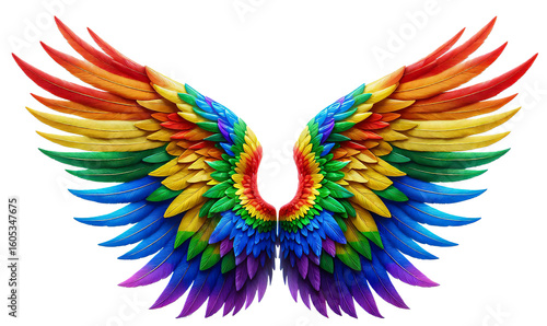 Obraz premium Engelsflügel in Regenbogenfarben auf transparentem Hintergrund, isoliert