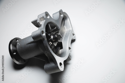 © yanik88, Obraz premium Engine coolant pump. New spare part on a contrasting gradient background for car services