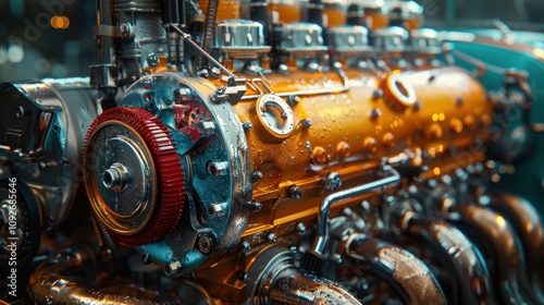 Fototapeta premium Engine maintenance techniques automotive workshop tutorial video indoor setting close-up view