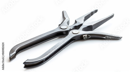 © Halal Vision Studio, Obraz premium Engine piston ring expander pliers for installing piston rings isolated on white background
