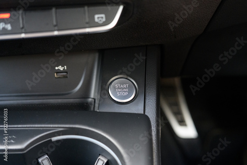 © Harry, Naklejka premium Engine Start/Stop Button: Sleek Car Interior Detail