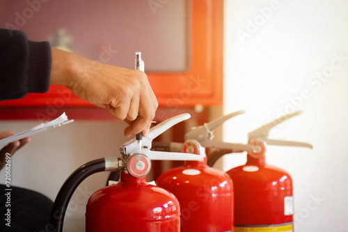 Naklejka premium Engineer check fire suppression system,check fire extinguisher tank in the...