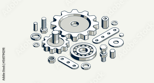 © Sylverarts, Obraz premium Engineer education concept, gears and cogs composition isometric 3D vector illustration, study science in university, engineering learning.