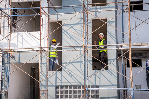 Fototapeta premium Engineer inspect building structure technicians looking at analyzing...