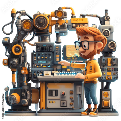 © Poomtan, Fototapeta premium Engineer Operating High-Tech Robotics Console