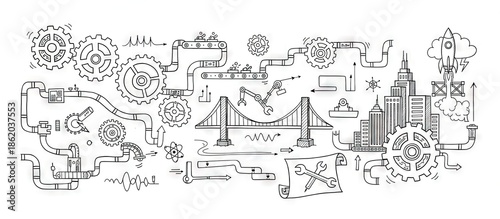 Obraz premium Engineering comical simplistic doodle/scribble drawing