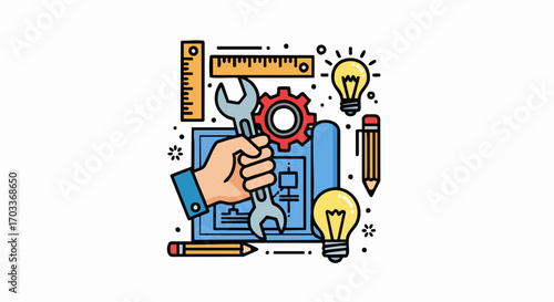 Fototapeta premium Engineering Design and Innovation Concept with Tools and Blueprint.