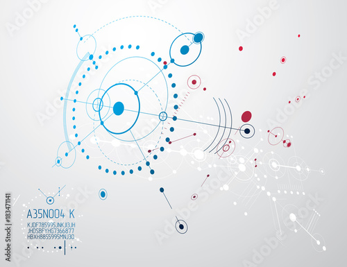 © Sylverarts, Obraz premium Engineering technology vector wallpaper made with circles and lines. Technical drawing abstract background.