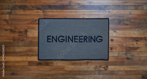 © Erlinda, Obraz premium engineering text on mat rug in wooden floor background