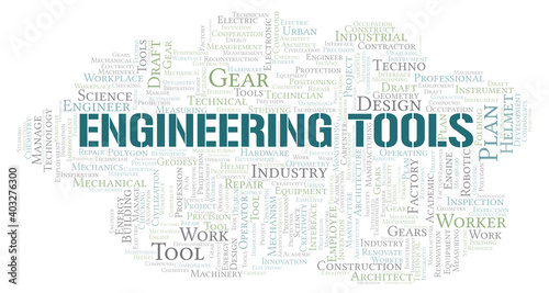 © sharafmaksumov, Obraz premium Engineering Tools typography word cloud create with the text only