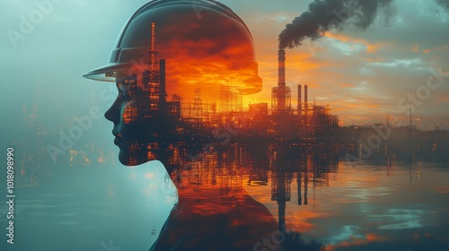Fototapeta premium Engineers at Work in Double Exposure Effect
