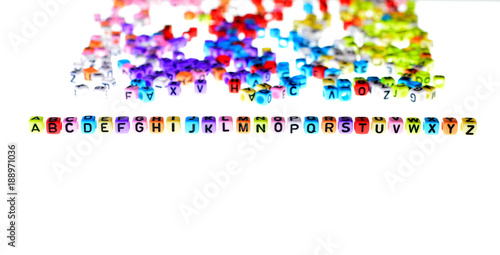 Fototapeta premium English alphabet letters on a white background with a blank spac