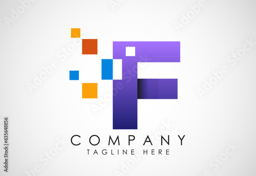 © BakiBullah, Obraz premium English alphabet with data pixel. Creative technological modern data pixel logo