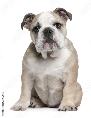© Eric Isselée, Obraz premium English Bulldog puppy, 5 months old, sitting