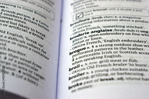 © BlueMistFilmStudios, Fototapeta premium English Dictionary Page Close Up With The Word Of -brogue