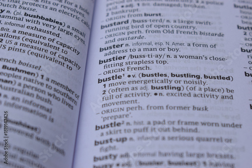 © BlueMistFilmStudios, Fototapeta premium English Dictionary Page Close Up With The Word Of -bustle