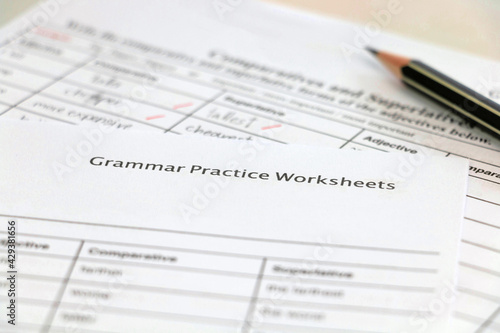Obraz premium English grammar practice sheet with handwriting