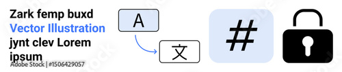 Obraz premium English to Chinese text translation, metadata tag for digital topics, padlock signifying security. Ideal for language tools, translation apps, cybersecurity, data encryption, privacy, tech tools