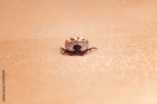 Obraz premium Engorged tick on a human skin. Lyme disease caused by borrelia.