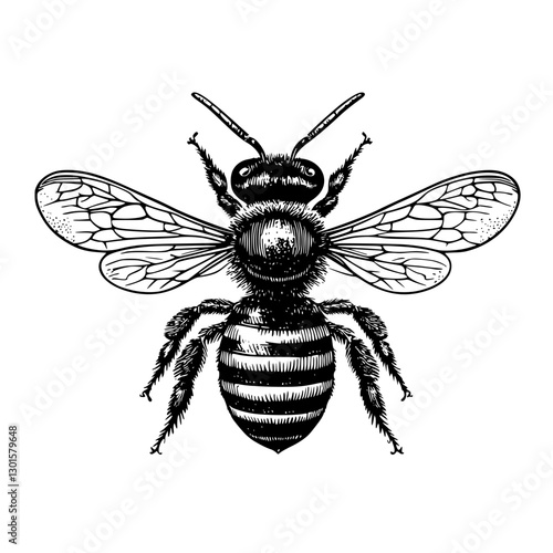 Obraz premium Engraved illustration showcasing a detailed bee design with intricate features and wings
