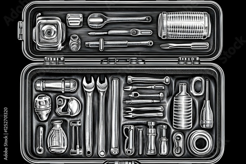 © Siasart Stock, Obraz premium Engraved Tool Kit Illustration