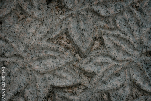 © Neils, Naklejka premium engraved tree leaves in granite. Carving texture background.