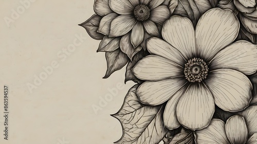 © Sajjad, Fototapeta premium Engraving hand drawn flower, Peony flower and leaves drawing. Vector hand drawn engraved ink illustration.