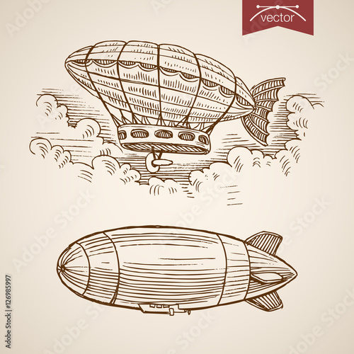 Fototapeta premium Engraving vintage hand drawn vector flying airship Pencil Sketch