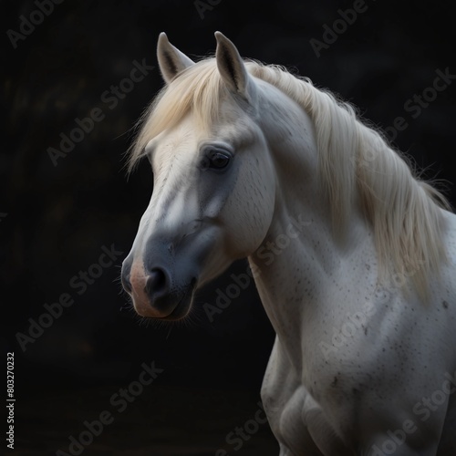 © Imranstudio , Obraz premium "Enhance your designs with our majestic white horse face background. Perfect for adding elegance to your projects." A Digital Artwork ar 1:1