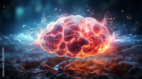 Obraz premium Enhanced Brain Activity in a Futuristic Neural Network.