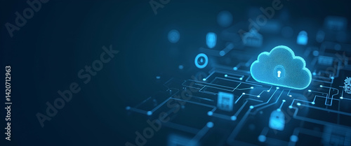 © HaJung, Naklejka premium Enhancing Cloud Computing Security: Advanced Encryption Protocols & Cyber Defense Strategies for Safeguarding Enterprise Data Integrity in Photo Stock Concept