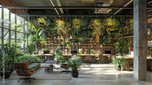 Naklejka premium Enhancing workplace wellness through biophilic design principles and integration of natural elements.