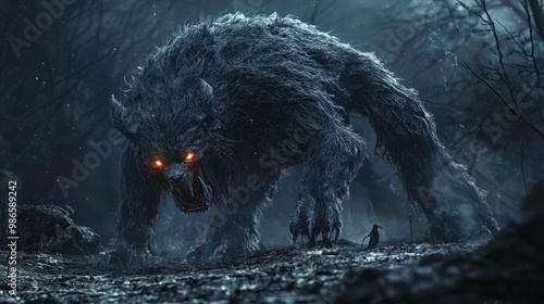 Obraz premium Enigmatic Dark Fantasy Beast in 3D - Mysterious Creature with Glowing Eyes...