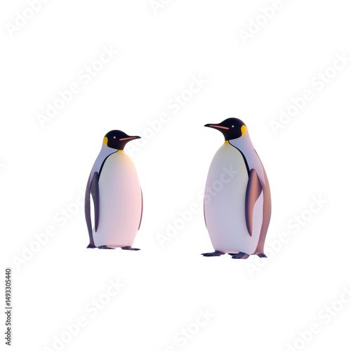© yendisupiandi, Fototapeta premium Enigmatic emperor penguins standing against a pristine white background
