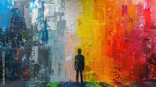 Obraz premium Enigmatic figure painting a dull, gray world with vibrant colors, each stroke...