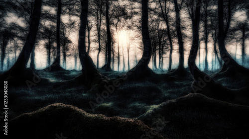 Obraz premium Enigmatic Forest Landscape with Dramatic Light and Shadow Play