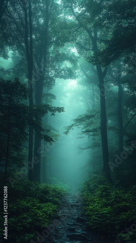 Obraz premium Enigmatic Forest Path: A Mystical Journey Through Verdant Woods