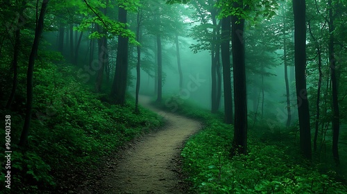 Fototapeta premium Enigmatic Journey: Mystical Foggy Forest Pathway of Life's Uncertainties, Premium Quality Image
