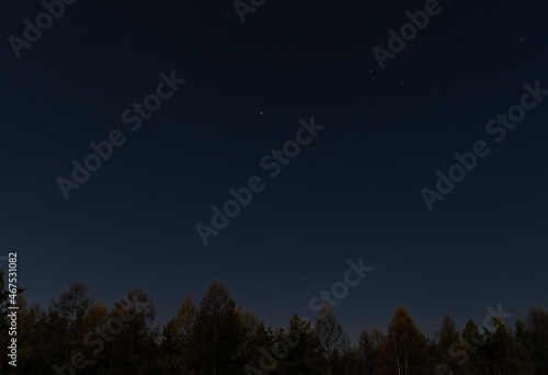 © Paul EtCetra, Naklejka premium Enigmatic moon light in autumn night with bright stars