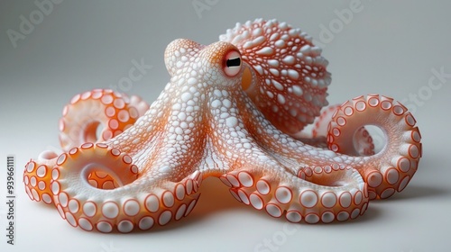 Obraz premium Enigmatic Octopus Dancing in White Space on White Background