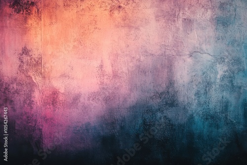 Fototapeta premium Enigmatic soft gradient background with distressed texture in hues of rose, tangerine, azure, and ebony, providing plenty of space for visuals or text