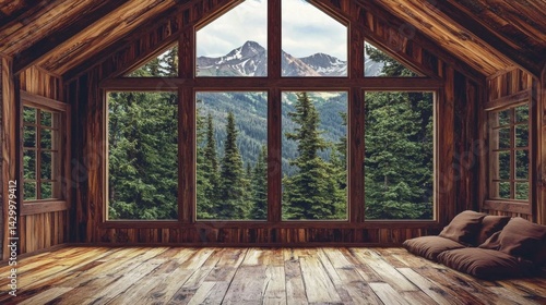 © MechaDesign, Obraz premium Enjoy breathtaking natural views through expansive windows.