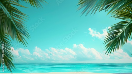 Fototapeta premium Enjoy vibrant palm trees swaying under a bright blue skyyour perfect tropical...