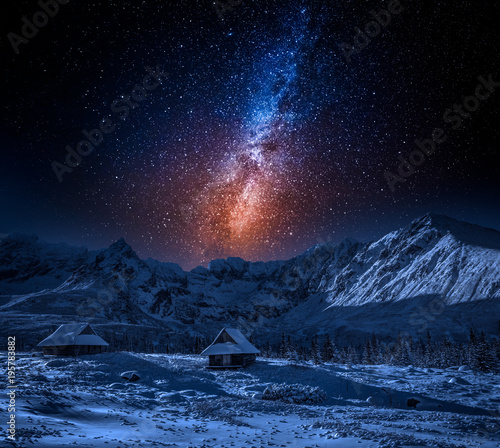 Fototapeta premium Enjoy your winter time in mountains with mily way