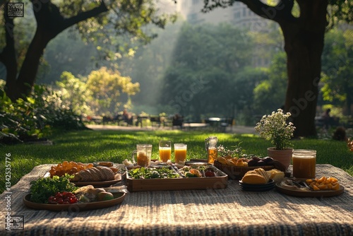 Fototapeta premium Enjoying a Delightful Romantic Picnic in a Scenic Park Surrounded by Nature's...