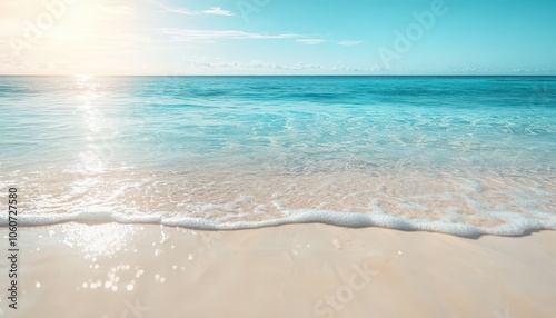 Fototapeta premium Enjoying a serene summer day at a tropical beach with soft waves and sunlit...