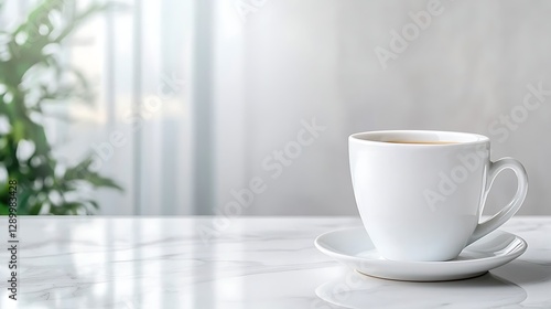 © nilawan, Obraz premium Enjoying a warm cup of coffee in a modern home space indoor still life minimalist design