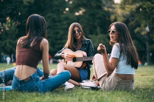 © qunica.com, Fototapeta premium Enjoying their time together with the guitar